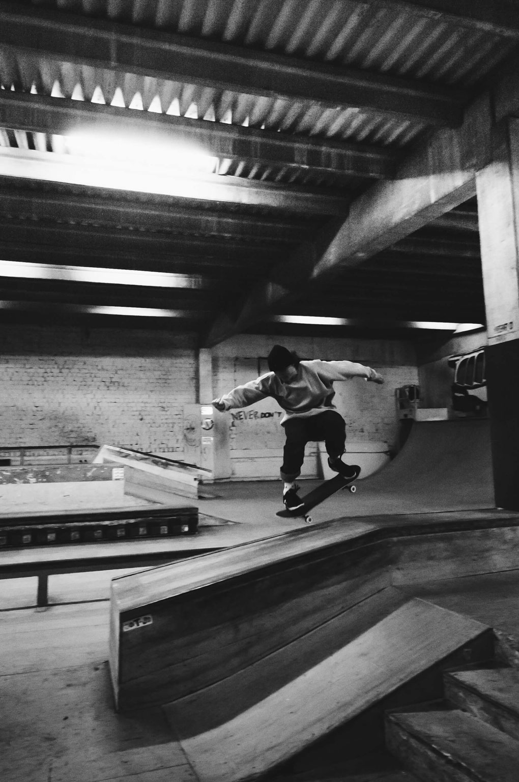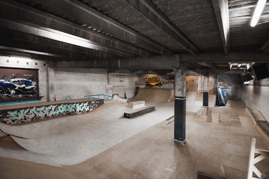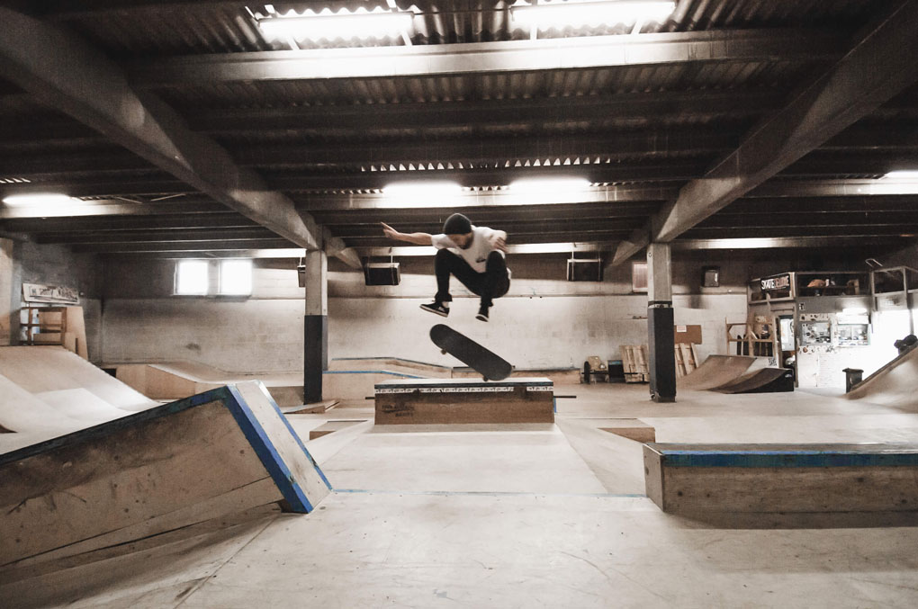 Die Skatehalle ist ausgestattet mit Holzboden, Banks mit eingelassener Quarter und Grindbox, 5er-Treppe mit Rail, Ledges, Handicapped Ramp, große Quarter, Wallride, Funbox mit Handrail, diversen Quarters, Curbs, Kicker und Wheelie-Table. Gerollt werden darf mit Skateboards, Inline-Skates, BMX und Dirt Bikes mit Plastikpedale, Plastik-Pegs und geschlossenen Lenkerenden. Wann wer fahren darf könnt ihr in unseren Öffnungszeiten nachlesen.